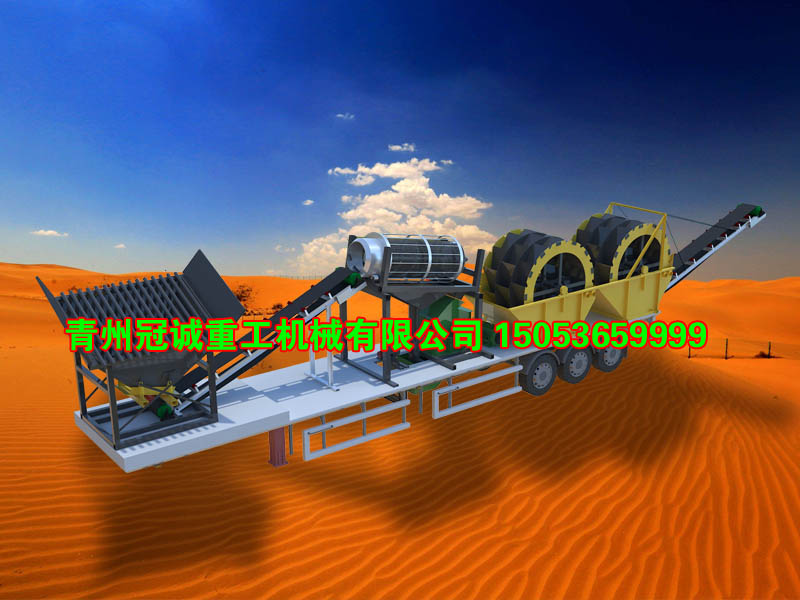 本套移動破碎站為移動式制沙水洗設(shè)備,處理量為每小時100-120立方(150-180噸)。可以使用半掛車頭或者挖掘機、裝載機等牽引車輛輕松移動到工作場地。