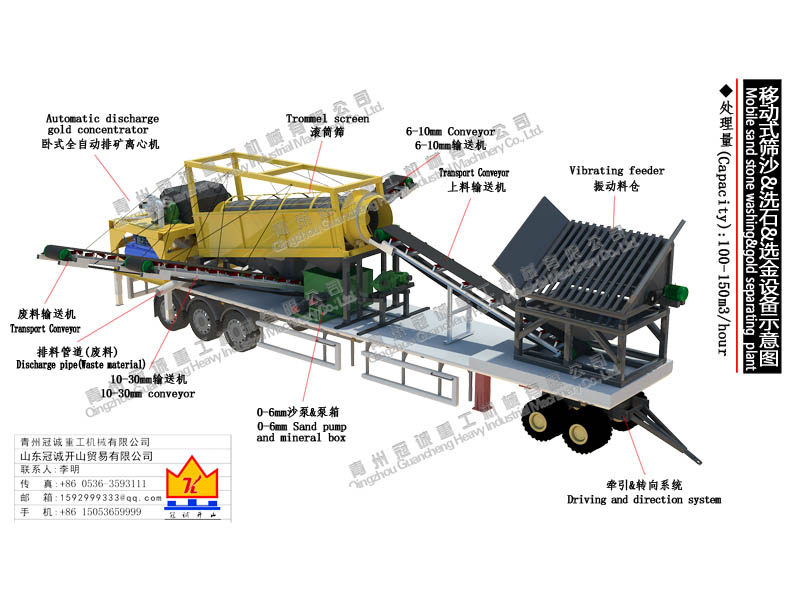 移動(dòng)式篩沙水洗選金設(shè)備移動(dòng)方便,操作簡(jiǎn)單,篩沙、水洗、選金一次完成,加載冠誠(chéng)重工生產(chǎn)的臥式全自動(dòng)排礦離心機(jī)精選,精選后的精料會(huì)由精料管道自動(dòng)排出;廢料由廢料管道自動(dòng)排出。